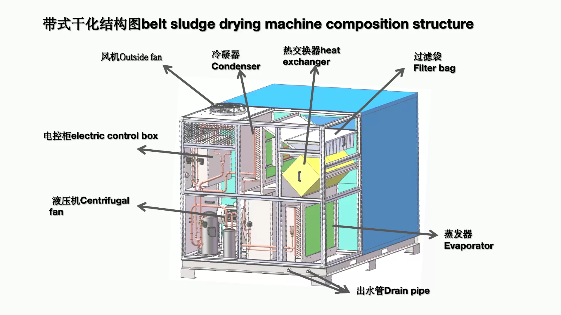 Using high eficiency heat pump low temperature design, it is efficient and energy saving.It can be widely used in munici.pal, printing and dyeing, paper making, electroplating, chemical industry, leather and other types of sludge drying treat-ment, providing strong technical support for Chinas sludge reduction.
