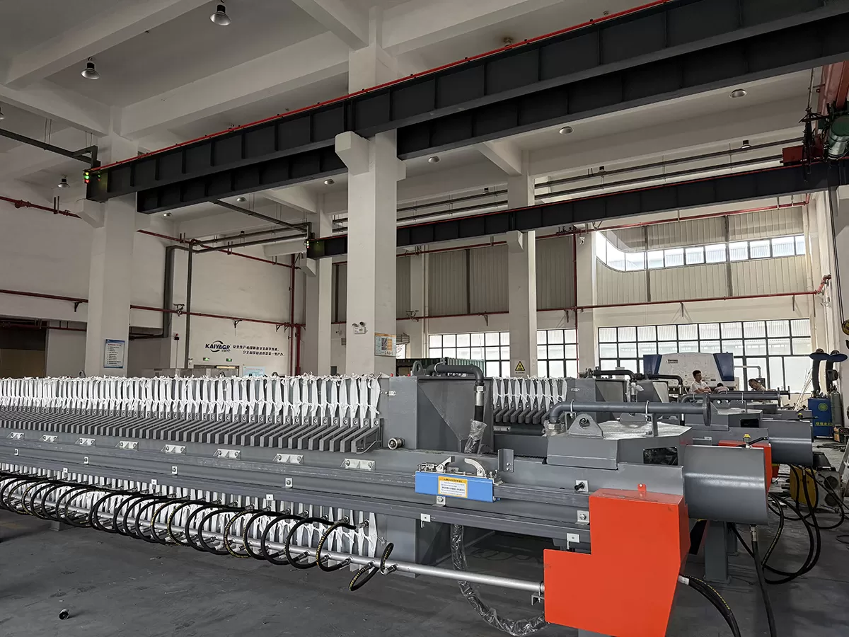 It mainly consists of a thrust plate, main beam, clamping plate, filter plates, filter cloth, and hydraulic system. Among them, the filter plates are the key components. Each filter plate has grooves on both sides. When two filter plates are attached together, they form an independent filter chamber. The surface of the filter plates has textures to guide the filtrate outflow.